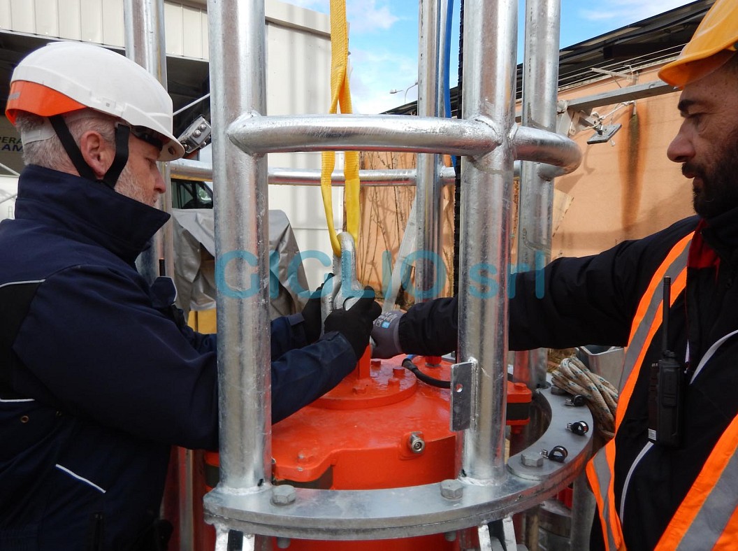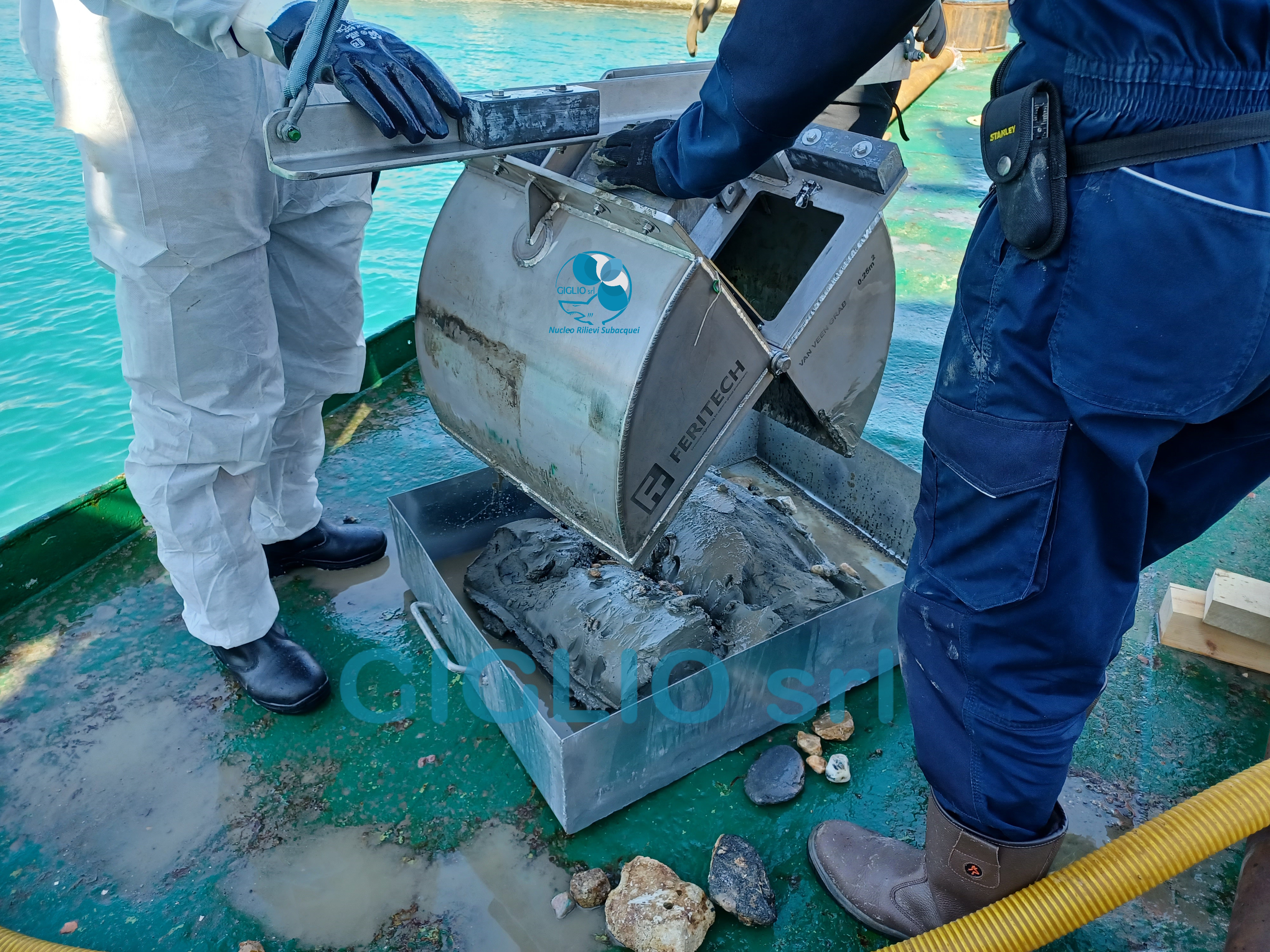 Una volta ultimata la fase di penetrazione sarà direttamente il verricello della gru del pontone a provvedere all’estrazione del carotiere per semplice trazione dello stesso sulla verticale e quindi adagiare lo stesso sul ponte del natante per procedere all’estrazione della carota. La necessità di non utilizzare camicie di sostentamento né in fase di infissione né in fase di estrazione rende le manovre ancora più semplici e veloci.
